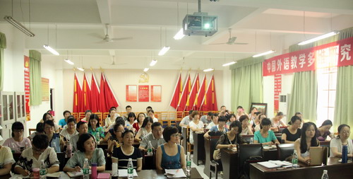 7月4日,邓教授的讲座《运用多层面文件夹,发展中国学生的写作能力---一项基于体裁法的研究》则让老师们对体裁法有了直观的认知,以及对语体实证研究的开展有了更加浓厚的兴趣。老师们还分享了邓教授最新学术专著“Developing Chinese EFL Learners' Generic Competence: A Genre-based &Process Genre Approach”( 2014年德国斯普林格 ( Springer)出版)的要旨。老师们表示今后会在文学、翻译、语言学等学科教学中更多运用多层面文件夹,积累科研素材,激发学生参与度,提高学生二语习得能力。