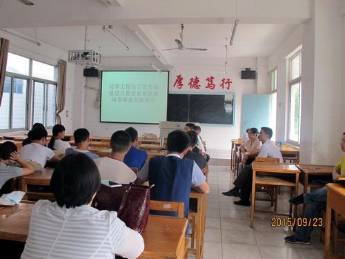 为深入了解学院在专业建设及常规教学中存在的问题,广泛征求同学们对学院常规教学、专业建设等方面的意见和建议,9月23日下午,化环学院在向学楼组织召开了各专业学生的“专业建设及教学常规”意见建议问卷调查及座谈活动。座谈会由各专业负责人主持,各专业每班出十名学生代表表参加问卷调查及座谈活动。