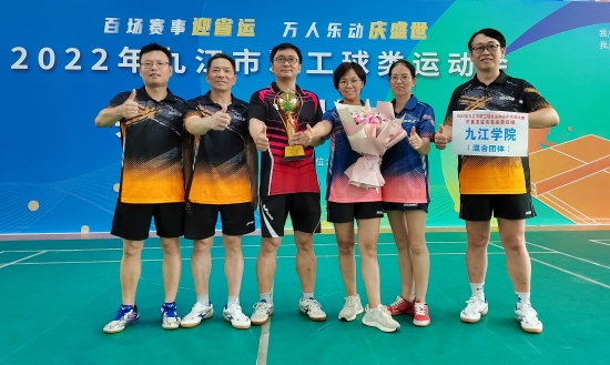6月22日至23日,九江市职工球类运动会乒乓球混合团体比赛在市文化宫举行。由我校马克思主义学院吕龙菊、管理学院王健、国际交流学院秦昱华、继续教育学院卢小澍、图书馆邓炯、文传学院何成瑶组成的九江学院教工代表队荣获市直组亚军,这是学校教职工参赛以来在该项目比赛中获得的最好成绩。