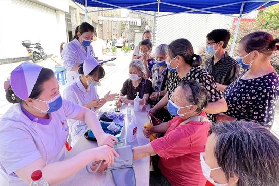 “医路护航”博士义诊团  “党建领航,医路护航”。7月1日,附属医院党政领导带队“博士士义诊团”专家送医下乡,前往都昌县大港镇进行健康义诊。活动现场,医护们向参加义诊和过路群众发放健康教育宣传资料,宣传疫情防控知识。医务人员认真细致地为前来咨询的居民检查身体、测量血压,耐心解答各种疑难问题,讲解疾病的预防、治疗及健康科普宣传,积极引导群众科学就医,普及医学常识及健康知识,倡导健康生活方式,让群众在家门口享受到了高水平的综合医疗服务。