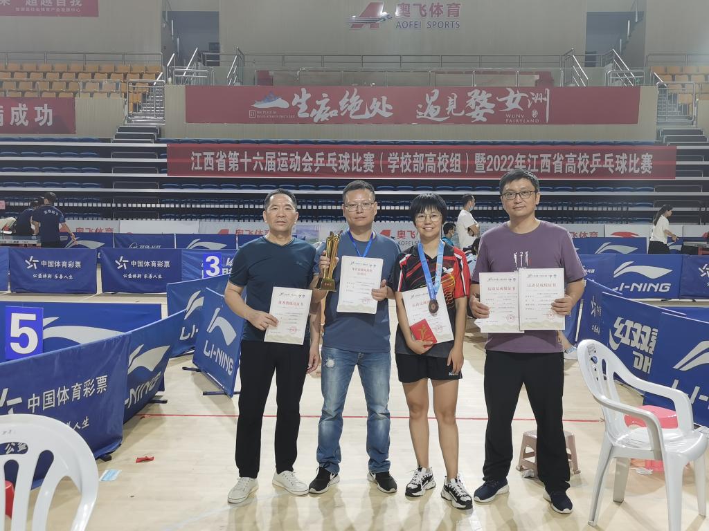 本次比赛为省内高校最高水平赛事,共有近500名运动员参加各组别的角逐。比赛设男女团体、男女单打、男女双打和混合双打七个项目,我校由卢小澍、吕龙菊、王健、秦昱华、何成瑶组成的代表队,在所参加的项目中均有斩获。男子团体赛,队员们克服赛程密集、年龄偏大、体力不足等因素,先后战胜东华理工大学、景德镇陶瓷大学、新余学院代表队,以三胜五负的成绩,获得第七名。何成瑶获女子单打铜牌,卢小澍、王健获男子双打第四名,王健获男子单打第五名。吕龙菊获评优秀教练员,卢小澍获运动员体育道德风尚奖。