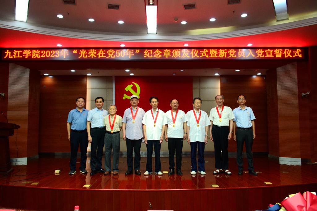 为深入推进学习贯彻习近平新时代中国特色社会主义思想主题教育,在即将迎来建党102周年之际,6月15日,我校举行“光荣在党50年”纪念章颁发仪式暨新党员入党宣誓仪式。校党委委员、副校长王殿元,市直机关工委委员周雷出席仪式并讲话;我校“光荣在党50年”纪念章获得者代表和大学生新党员代表80余人参加仪式。