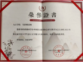 近日,由中国语文报刊协会读写教学分会举办的第五届全国大学生语言文字能力大赛决赛成绩揭晓,我校文学院汉教A2151班由吴舒雅老师指导的6位同学中有4位晋级决赛,郑欣宇同学获得大赛决赛专业组一等奖,杨青霞、胡凌煊同学获决赛专业组三等奖,黄燕同学获决赛专业组优秀奖。