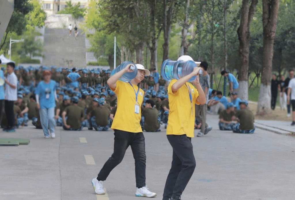 军训场上,有这样一个团体,他们戴着工作牌,身着统一服装,为新生指导动作,提供服务,活跃在每个学院的队伍。从旭日东升到点点繁星,他们从未缺席每一场训练,始终陪伴着新生军训。