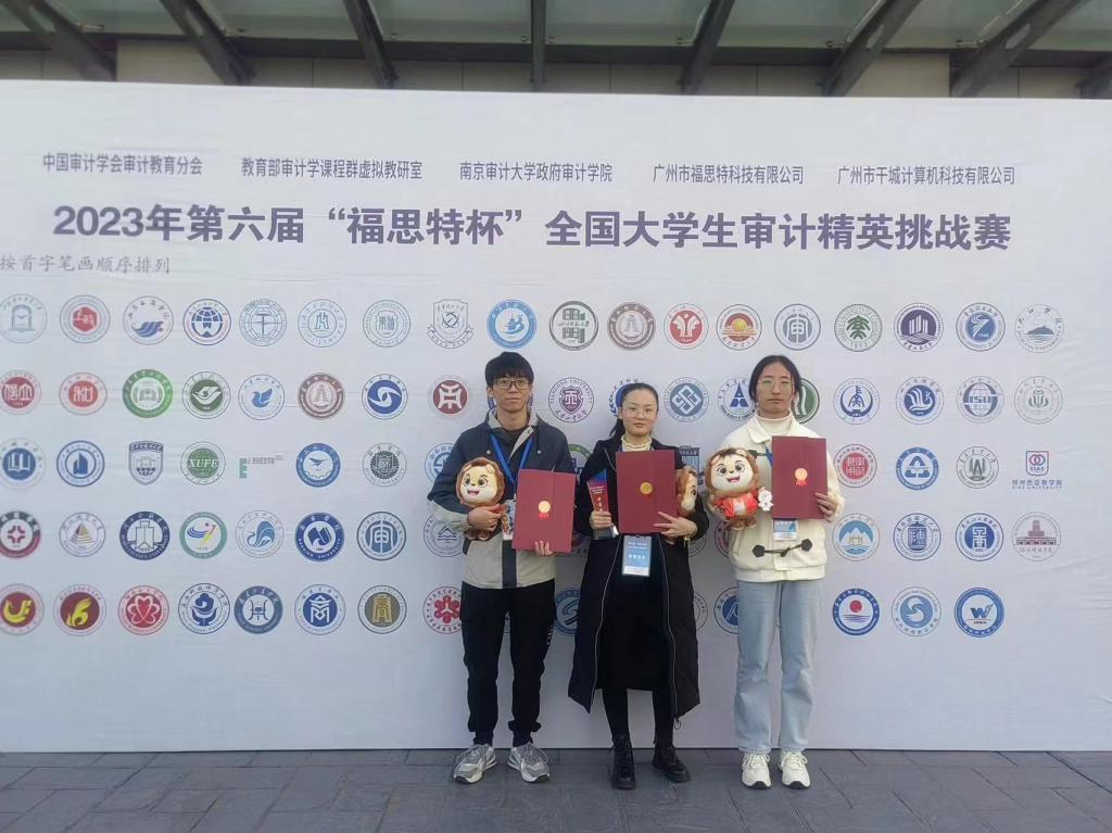 11月18日,第六届“福思特杯”全国大学生审计精英挑战赛在江苏南京审计大学圆满落幕。由我校管理学院胡淑娟和尹曦老师指导,审计学专业2021级叶艾、淦还珠、占立威三位同学组成的参赛代表队,凭借扎实的专业能力和完美的团队合作,以排名第一的总成绩荣获全国特等奖(本科组),并且在大赛的闭幕式上代表全体获奖队伍作典型发言。