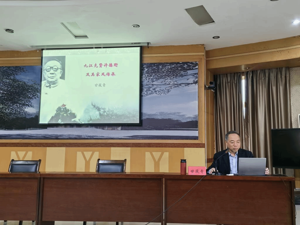 4月2日下午,学校召开纪念许德珩生平事迹座谈会,邀请甘筱青教授作《九江先贤许德珩及其家风传承》专题讲座。校民主党派、无党派人士和学生代表共80余人聆听讲座,讲座由党委委员、统战部长刘遵海主持。讲座还邀请了许德珩老先生的长孙许正林参加。
