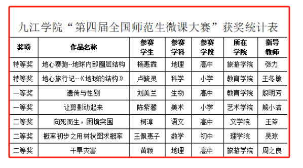 不断深化教学创新改革,教师创新能力和教学水平显著提高。学校高度重视教学改革,出台《九江学院教学成果奖培育项目管理办法(试行)》,鼓励和支持广大教师坚持问题导向,不断总结教学实践中的先进经验,积极参与教学改革和研究工作,进一步推动和深化学校教育教学改革与研究;出台《九江学院青年教师导师培养制实施办法(试行)》,充分发挥中老年教师在培养青年教师工作中的“传、帮、带”作用,加强校内外教师教育教学研讨交流,分享经验,取长补短;秉承“以赛促建、以赛促用、以赛促教、以赛促改”的理念,不断完善教师教学竞赛体系,开展教师课堂教学竞赛、青年教师教学竞赛、教师教学创新大赛和混合式教学设计创新大赛和课程思政比赛等各类教学赛事,促使教师不断改进教学方式、提升教学水平。