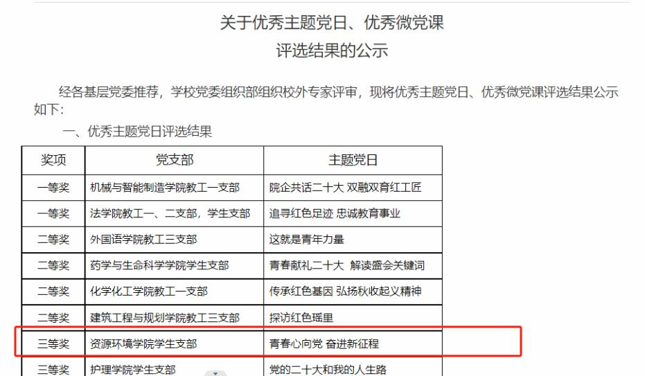 学院党委结合自身办学特色,以“绿水青山就是金山银山”理念为主题,以基层党组织建设为主线,以“弘‘两山’理念、育环保英才”为目标,开展三全育人的探索实践,创建“两山”党建品牌。精心组织5期“两山”思政讲堂;组织开展“党建引领践行‘两山’理念,助力武宁乡村振兴”等‘两山’党建品牌主题党日活动。获批省高校人文高校思想政治工作专项项目1项,获批校党建课题1项;学院申报的“弘‘两山’理念 育环保英才”“党建+”优秀案例获校“党建+”优秀案例二等奖,并获批校教师党支部书记“双带头人”工作室创建单位。在今后的工作形成了党建工作“1234”工作思路即围绕一条主线、筑牢两个理念、着力三个抓手、建设四项工程。