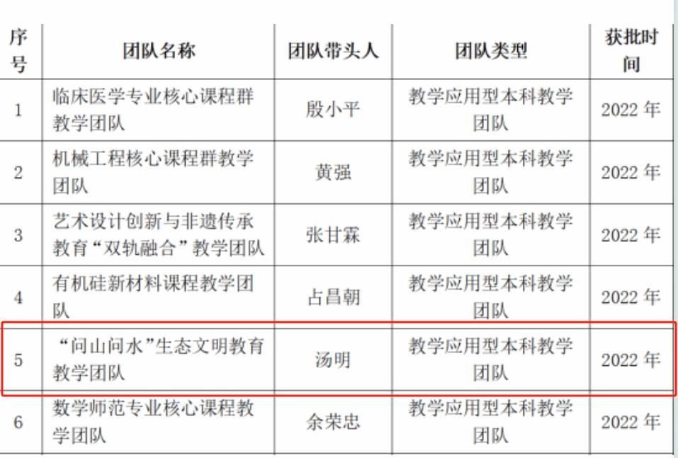 学院依托教育部、省社科基金,省教改课题等开展生态文明教育主题研究、课程思政教学研究,成立生态文明教育虚拟教研室、鄱阳湖生态文明研究院,引导师生扎根赣鄱大地,取得明显成效。“问山问水”生态文明教育教学团队获批为省级高水平本科教学团队,阶段性成果获江西省教学成果一等奖1项,二等奖1项;《以学堂制特色化探索生态文明教育“九江学院经验”》被新华社、人民日报等主流媒体多次报道,新华社点击率超40万。
