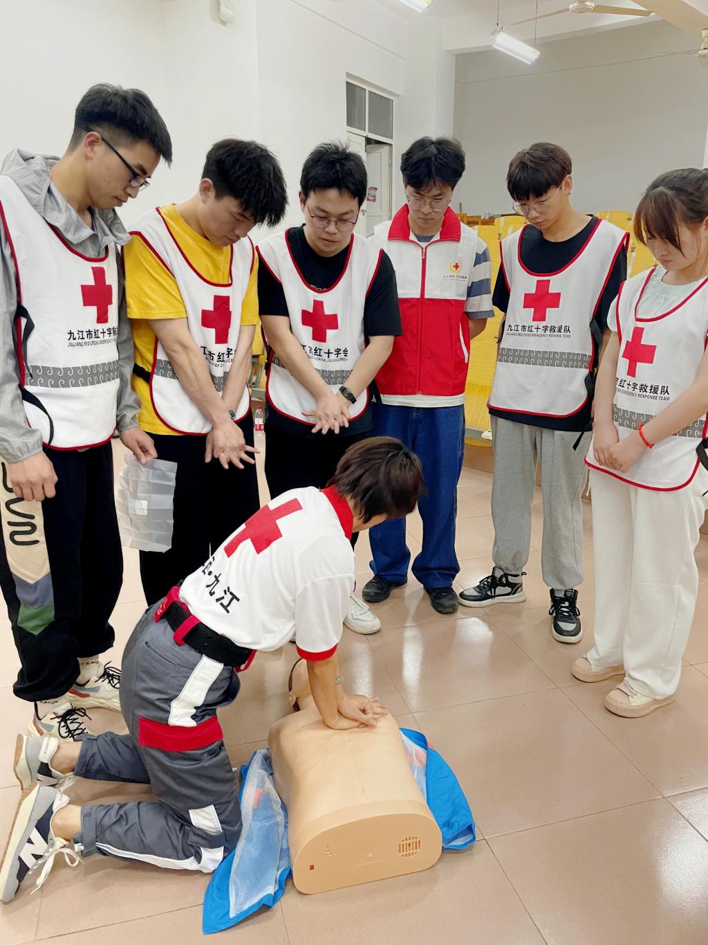 据悉,本次国际认证救护员培训会于5月8日开始,持续进行至5月31日。培训将从理论内容、实操技能训练、文化交流活动三方面展开,讲述国际红十字运动起源、救护概论、心肺复苏术、自动体外除颤器的使用、创伤救护四大技术、防灾避险常识,特殊伤的处置;进行心肺复苏(CPR+AED实操)、止血、包扎、固定、搬运的实操;组织留学生分享各自国家的安全与急救知识。培训旨在通过理论授课、实际操作以及户外演练的形式,将第一课堂与第二课堂相结合,进一步推动红十字博爱大讲堂走进九江学院,向留学生传授自救互救技术,增进他们之间的交流与合作,从而培养出更多具备高度安全意识的国际化人才。
