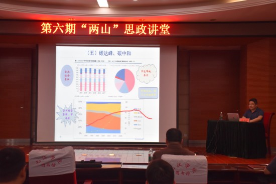 5月17日,由九江学院、九江市生态环境局、九江市濂溪区生态环境局共同主办的低碳知识校园宣讲暨资源环境学院第六期“两山”思政讲堂活动在九江学院逸夫图书馆报告厅举行,活动邀请了江西省生态环境科学研究与规划院的专家冯明雷授课。资环学院负责人、九江市生态环境局、九江市濂溪区生态环境局、资环学院师生代表共120余人参加此次活动。