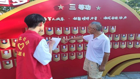 退伍老兵李文若向实践队员黎凌云讲述革命烈士故事