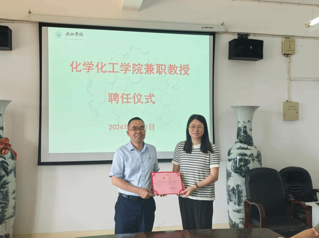 为进一步加强双方的合作,化学化工学院还举行了聘任仪式,正式聘任九江市教育科学研究所的化学教研员方晴为兼职教授。这一举措不仅加强了双方的学术交流与合作,也为学院的教学和科研工作注入了新的活力。