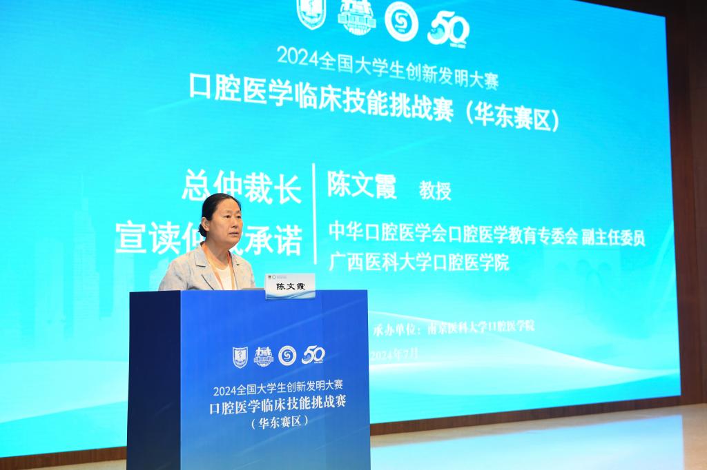 比赛邀请中华口腔医学会口腔教育专业委员会主任委员王林全程督导,中山大学光华口腔医学院副院长林正梅担任裁判长,广西医科大学口腔医学院书记陈文霞担任仲裁长,以及来自华东地区32所口腔本科院校的资深专家担任裁判员。
