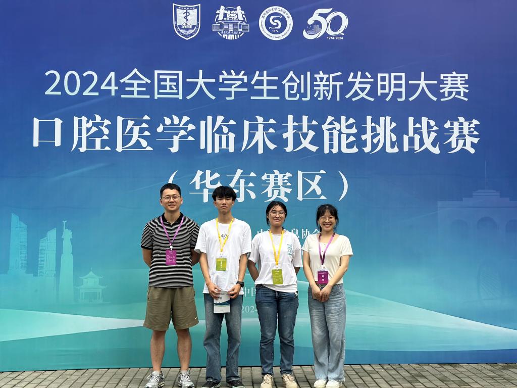 口腔医学院口腔医学本科学生胡涣、邵宝锋在胡雪华、刘芳强两位老师的精心指导下,在名校云集的华东区域赛中脱颖而出,顺利晋级国赛。此次2024全国大学生创新发明大赛口腔医学临床技能挑战赛全国102家院校报名参与,从6月6日至7月16日,共分七个赛区,历时40天,竞争极为激烈。