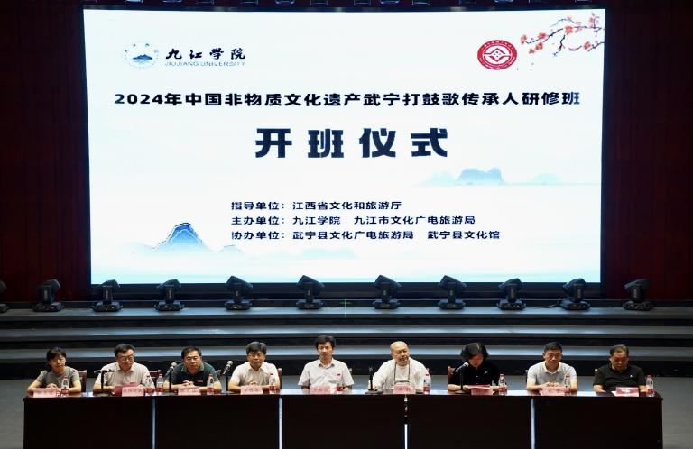 9月2日上午,2024年度中国非物质文化遗产武宁打鼓歌传承人研修班在我校艺术学院音乐厅举行开班仪式。研修班由艺术学院主办,来自武宁县的30多名学员参与此次研修活动。校党委委员、副校长查振华代表学校致开班辞。中国戏剧文学学会会长羊驰,江西省文旅厅非遗处处长邓明华,九江市文化广电旅游局副局长杨珺、艺术学院负责人等出席开班仪式。
