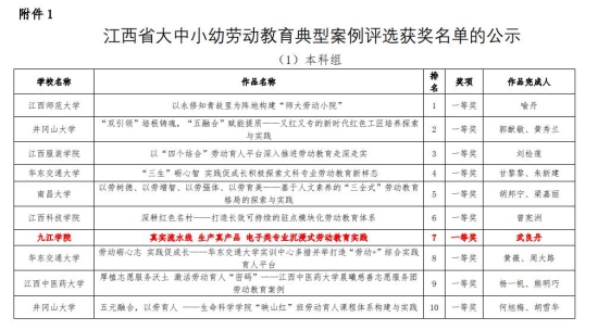 我院劳动教育典型案例获江西省本科组一等奖