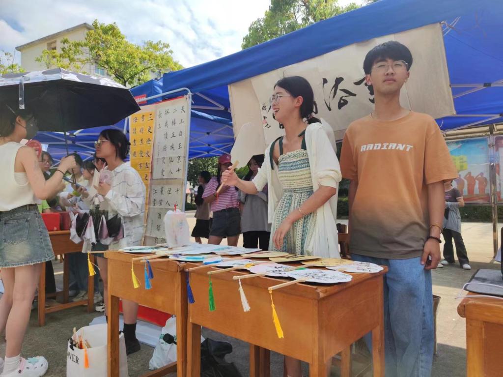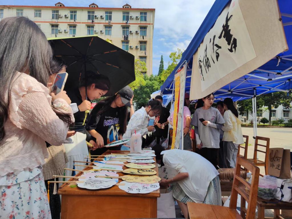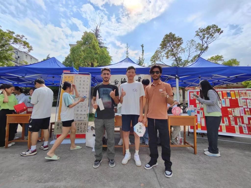9月11日下午,以中秋为主题的中华传统文化书法展在三食堂广场上举行。一幅幅精美的书画化身文化传播的使者,吸引了许多同学的驻足,来自巴基斯坦的留学生帅虎说:“我特别高兴书法协会邀请我来参观展览,让我有机会能更深入的了解中国文化。”留学生们通过写中国字,学中国话,聆听中国故事,深深感受到中国传统文化的魅力,而社团同学们也做到了用自身力量弘扬中华传统文化、传播中国声音、讲述中国故事。
