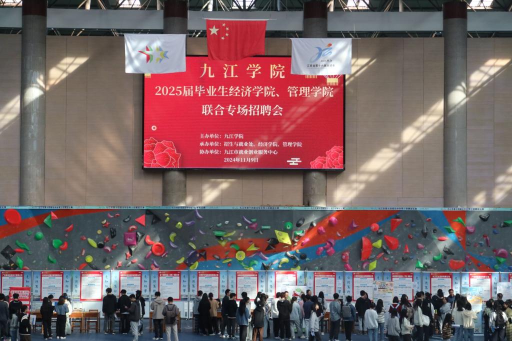 为切实做好我校2025届毕业生就业工作,服务毕业生高质量就业,11月9日,由九江学院主办,招生与就业处、管理学院与经济学院联合承办、九江市就业创业服务中心协办的2025届毕业生联合专场招聘会在体育训练中心顺利举行。副校长查振华到招聘会现场指导,招生就业处负责人、经济学院、管理学院负责人参加。