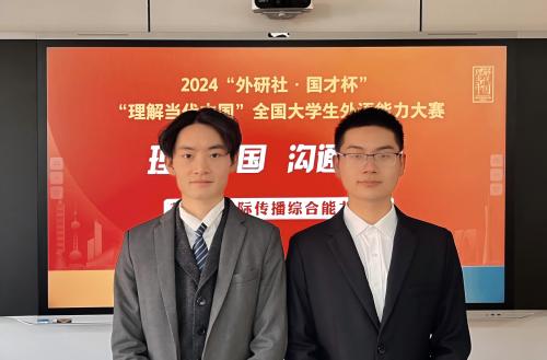 在两轮国赛中,陈浩和程鑫同学凭借强大的抗压能力和稳定的发挥水准,展现了优秀的语言技能和对中国文化的深刻理解。他们不仅在英语表达上流畅自如,更在国际传播领域展现了独到的见解和创意。这一成绩的取得,得益于学院、专业教研室长期以来对英语教学的重视和对国际传播能力培养的持续投入。