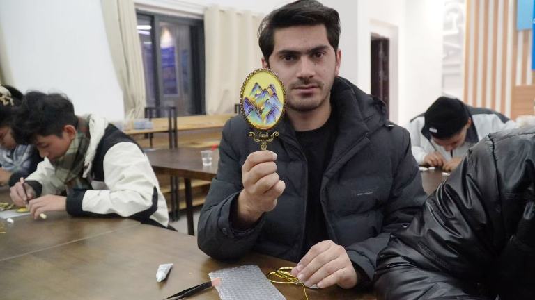而尼日利亚的留学生哈米渡(HAMIDU)则表示:“非物质文化遗产是中华优秀传统文化的重要组成部分,也是促进不同文明交流互鉴的重要载体。我非常高兴能在这里体验到中国古代皇家御用器物——景泰蓝的制作过程。我期待未来能有更多的机会来到九江职业大学的天工制作坊,继续学习陶艺、版画、扎染、蜡染、剪纸、插画及漆画等工艺美术工坊的技艺,深入了解中国的非遗文化。”
