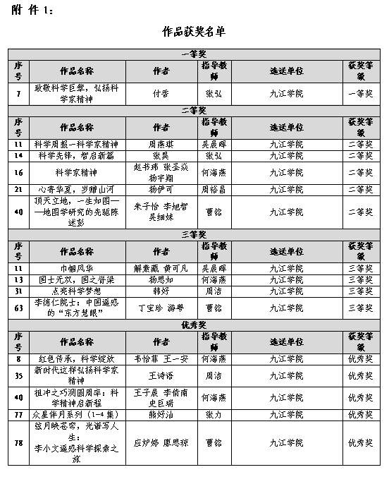 近日,江西省科学技术协会公布了江西省第十届大学生科普动漫创作大赛的获奖结果,我校参赛师生表现卓越,成绩斐然。在此次大赛中,我校学生组一举斩获1个一等奖、5个二等奖、4个三等奖以及5个优秀奖。同时,艺术学院的何海燕老师荣获优秀指导教师奖,我校也凭借出色的组织工作,荣获本届大赛的优秀组织奖。
