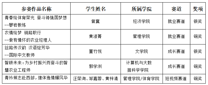 本届大赛设有成长赛道、就业赛道和短视频赛道,大赛采用校赛、省赛两级赛制,其中省赛分复赛和决赛两个环节,各赛道每所高校入围选手原则上分别不超过2人。本次大赛自2024年10月启动以来,我校高度重视,由招生与就业处牵头多部门成立组委会,系统筹备精心组织,各二级学院积极响应,发动广大学生踊跃参赛,充分展示了我校大学生良好的精神风貌和积极的就业心态。据全国大学生职业规划大赛平台数据显示,我校累计报名成长赛道和就业赛道的学生达7751人。全省共282人进入就业和成长赛道决赛,我校4人入选,全省共40个作品入围短视频赛道决赛,我校1个作品入选,最终在省赛中全部获奖,取得2银3铜的好成绩。