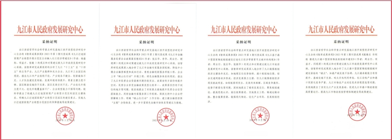学院教师团队智库报告被九江市政府发展研究中心采纳