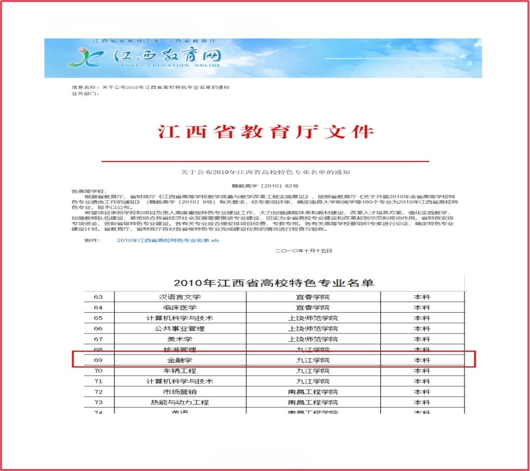 金融学专业被认定为省级特色专业
