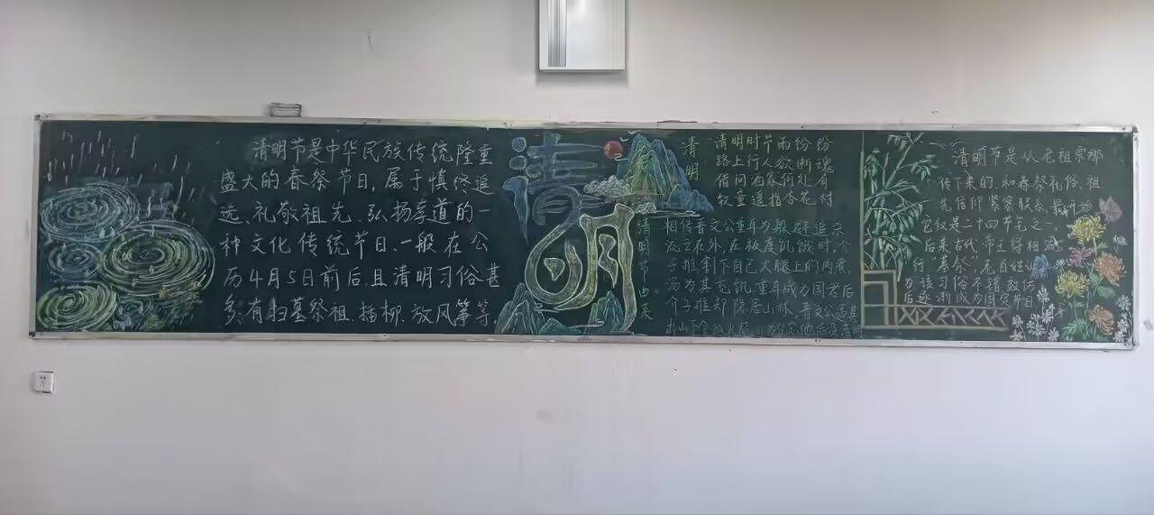 清明节期间,管理学院打造宣传矩阵,线上通过立信团青微信公众号发布《清明追思|传承文化基因缅怀革命先烈筑牢信仰之魂》推文,科普清明节起源、习俗,分享祭扫注意事项;线下组织学生创作清明节主题黑板报,从清明时节祭扫祖先、寄托哀思的场景,到“清明时节雨纷纷,路上行人欲断魂”的千古名句,再到介子推与寒食节的历史典故,丰富的内容让黑板报兼具文化性与趣味性,营造清明节日浓厚氛围。
