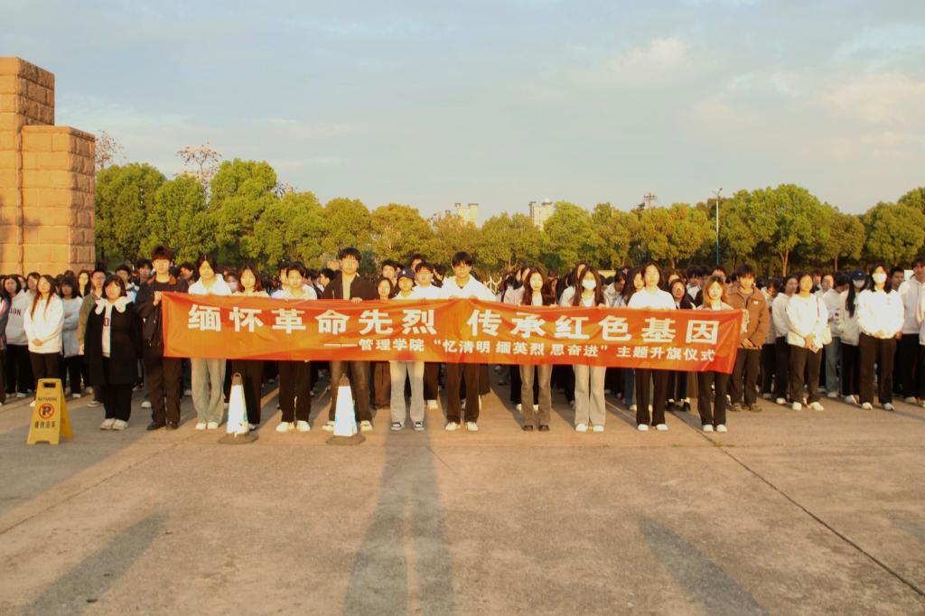4月7日清晨,管理学院组织800余名师生齐聚校西门广场,开展“缅怀革命先烈,传承红色基因”管理学院忆清明·缅英烈·思奋进主题升旗仪式。学生代表谢铭旋作《缅怀革命先烈,传承红色基因》主题发言,朗诵队作《血脉里的回响》朗诵。他们以声传情,字句铿锵,歌颂先烈英勇事迹,在场学子无不动容,引导师生在缅怀与追思中传承红色基因、凝聚奋进力量,让红色基因代代相传。