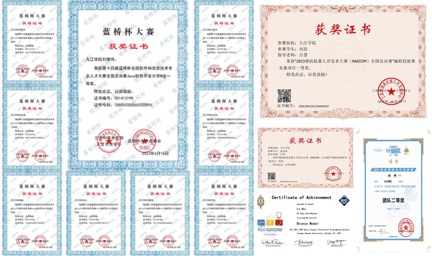 图4-8学生参加学科竞赛获奖证书