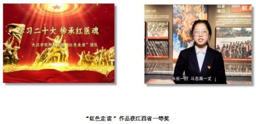 通过各项活动的开展,临床医学院培养出大批政治素养过硬、 社会实践能力突出、专业学识扎实的复合型人才。学院以抗洪为 主题拍摄视频荣获国家级二等奖,红色走读作品荣获江西省一等奖,暑期三下乡社会实践服务队获市 优秀服务队的称号,调研报告荣获省级优秀调研报告,“互联网 +”创新创业大赛我院有效申报率 73.2%,连续四年荣获优秀组 织奖,实现了思想引领、实践创新与学业发展的三维共振。