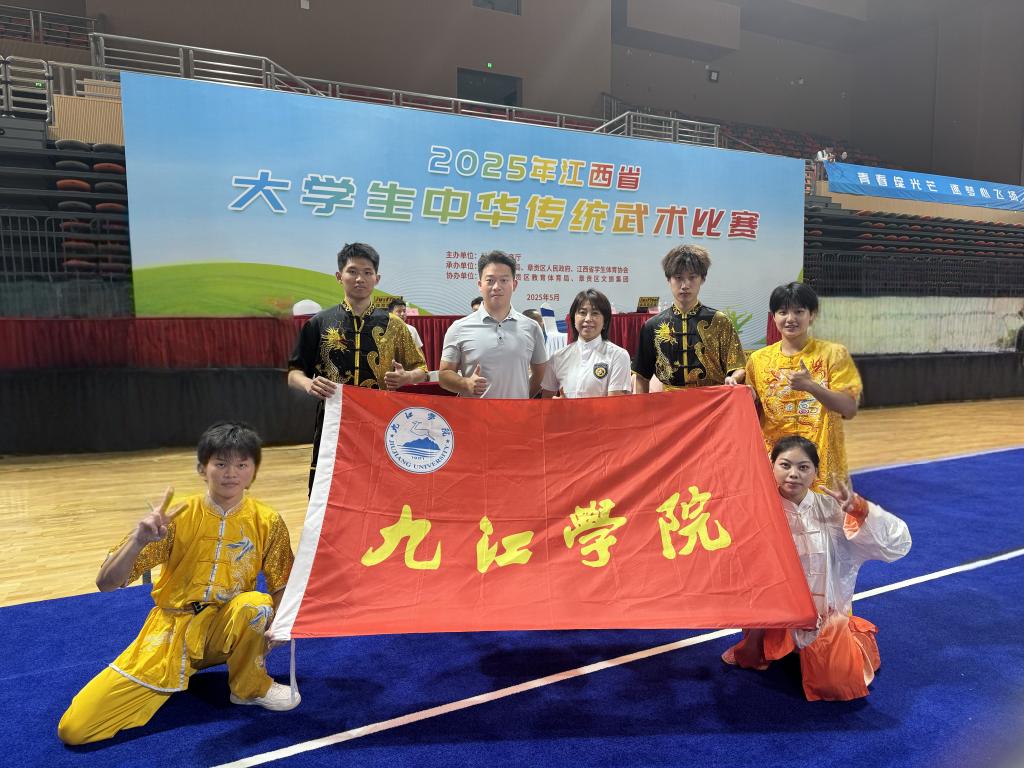 5月8日至11日,赣州市体育中心体育馆内刀光剑影、拳影如风,2025年江西省大学生中华传统武术比赛在此激情上演。全省30余所高校武林高手齐聚,九江学院武术队以1金2银1铜的佳绩惊艳赛场,更揽获第五名1项、第六名1项、第八名3项。