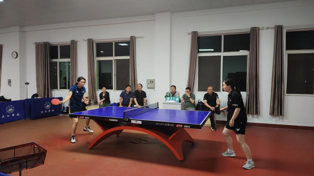 为进一步响应全民健身计划,强化广大教职工体育锻炼的良好习惯,丰富教职工体育文化生活,5月30-6月3日,九江学院教职工乒乓球团体比赛在校工会三楼乒乓球室举行。本次比赛由校工会主办、教职工乒乓球协会承办,是学校教职工乒乓球协会成立以来举行的首届乒乓球比赛。比赛吸引了全校各分工会、60余名教职工踊跃参与。