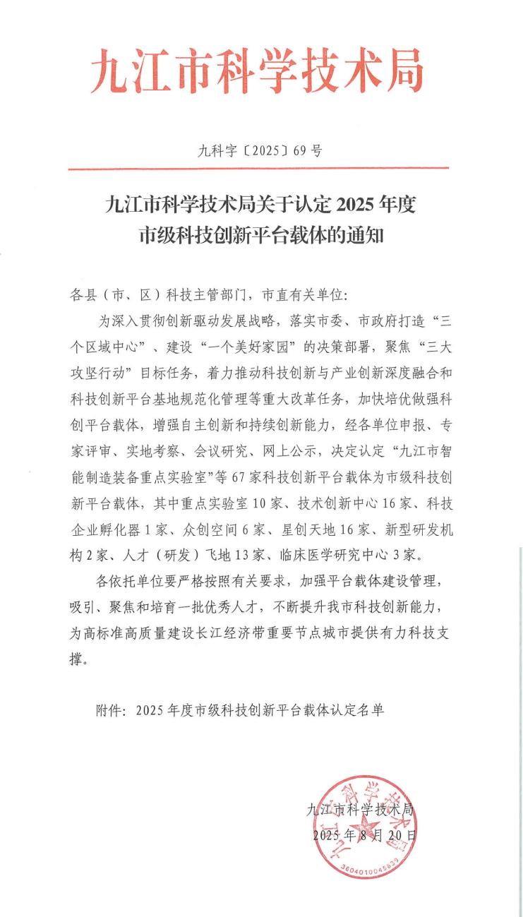 近日,九江市科学技术局公布了2025年度市级科创平台载体认定名单,依托九江学院附属口腔医院申报的“九江市口腔疾病重点实验室”成功获批。该实验室的设立,是附属口腔医院在科研平台建设方面取得的一项重要突破。